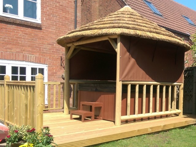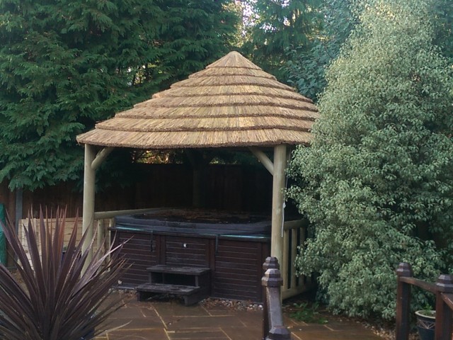 Extremely popular due to its rustic look, machine round timber construction and affordable prices, our African style Gazebos create an authentic and sturdy thatched wooden gazebo. We use pressure treated timber, guaranteed for 10 years and ready for immediate use with no need for additional stain or preparation. The roof features Cape Reed Thatch Tiles which offer a modern twist to the traditional thatched roof. These beautifully crafted gazebos have been designed to compliment your garden area, making the most of your outdoor space whatever the weather.