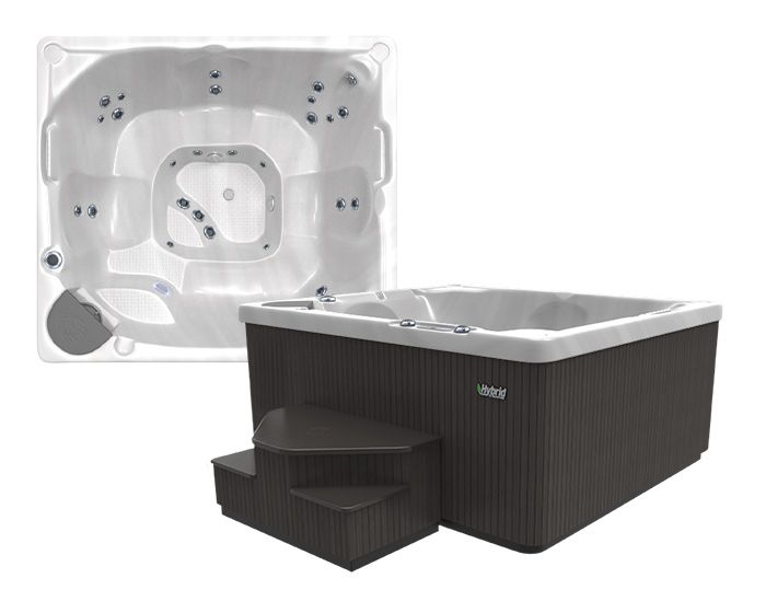 Beachcomber Hot Tubs are self-cleaning using an Infinity Skimmer, Microfilter™️, Gravity Floor Drain, and on select models, a Hush Pump System™️ with Sweeper Jets.