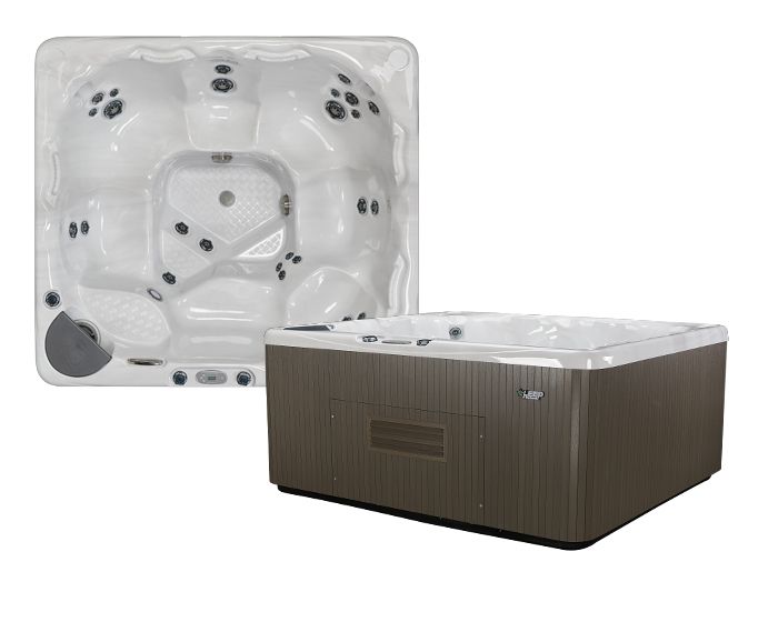 Beachcomber Hot Tubs are self-cleaning using an Infinity Skimmer, Microfilter™️, Gravity Floor Drain, and on select models, a Hush Pump System™️ with Sweeper Jets.