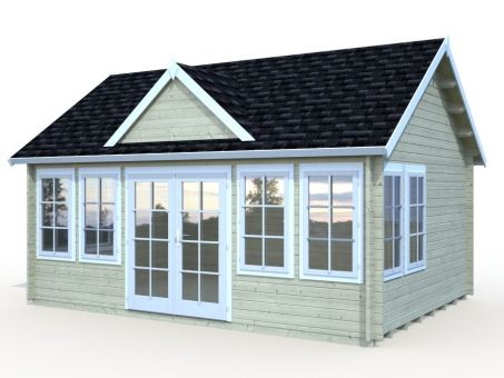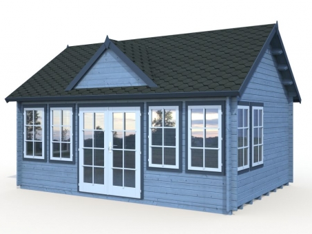 The Brookhaven is a traditional design Log Cabin with cylinder locking double door and surrounding windows, all featuring real 4mm glass. The walls are 34mm tongue and groove construction and 19mm tongue and groove floor and roof with the option of felt or shingles covering. The double doorway has a low threshold door sill with stainless steel protective capping and laminated frame. The cabin is supplied unfinished and can be stained or painted in any colour to suit. It has a manufacturer’s 5-year guarantee.